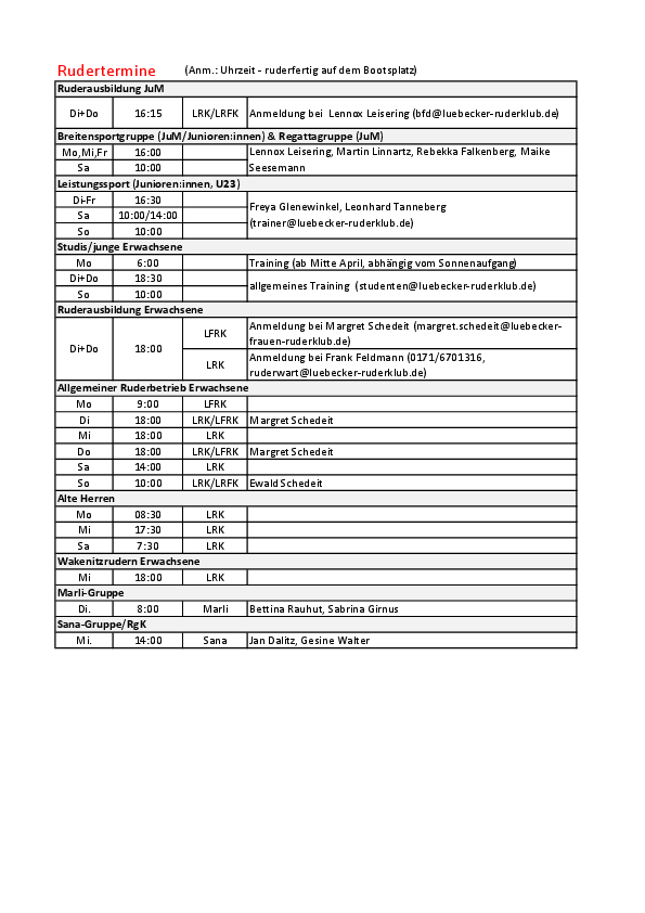 Trainingstermine Sommer
